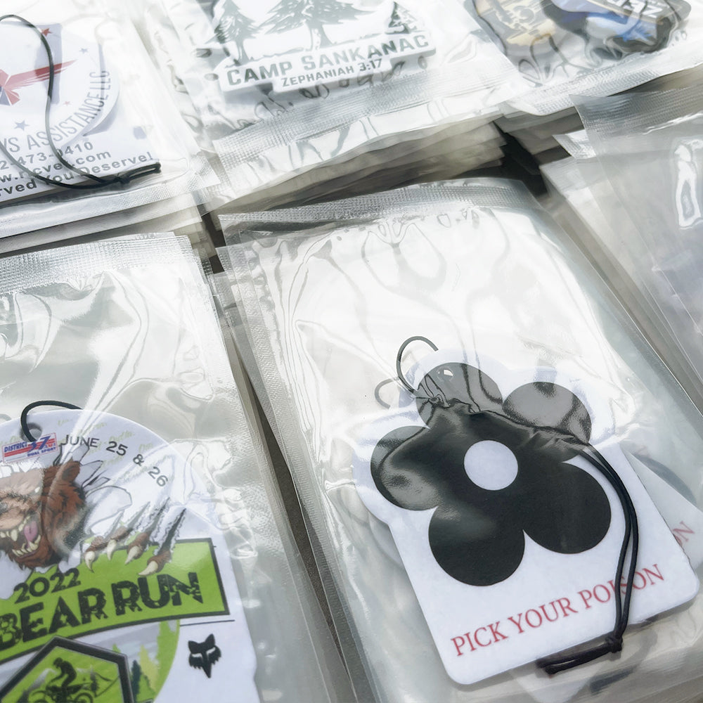Our Custom Air Freshener is perfect for promoting your brand while adding a pleasant fragrance to cars or indoor spaces. Made from high-quality materials, these air fresheners are fully customizable with full-color double-sided printing and can be cut into any shape to match your logo or design. Ideal for giveaways, promotional events, and corporate gifts, each air freshener is individually packaged for easy distribution. Choose from a variety of scents to create a memorable and practical marketing item.